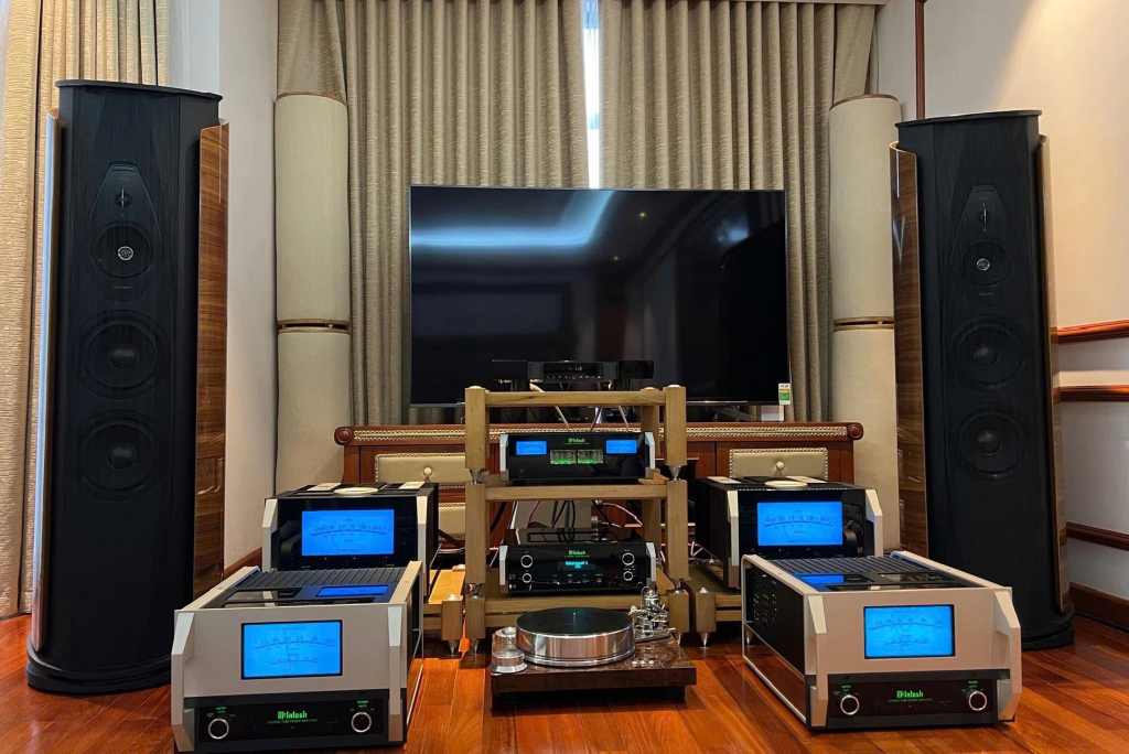 Aida II SE phiên bản da từ thương hiệu Poltrona Frau hiện đang được xem là một trong những mẫu loa cột đặc sắc nhất của Sonus faber. Với thiết kế gồm Mid High, Low và Deep Low thì việc tách cầu được xem là hình thức phối ghép có thể khai thác hiệu quả những tiềm năng của Aida II SE (Poltrona Frau). Chính vì vậy, hệ thống Bi-amp từ McIntosh với Poweramplifier Bán dẫn – MC1.25KW cho Low / Deep low, và Poweramplifier Đèn – MC3500 MKII cho Mid High có thể nói là tận dụng tốt những gì Aida II SE (Poltrona Frau) hiện có.