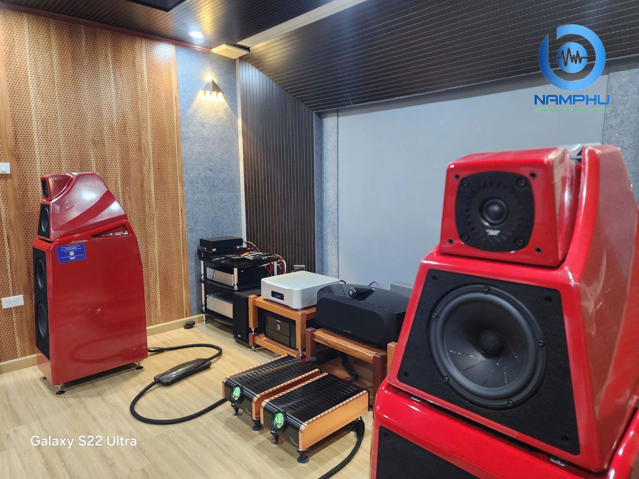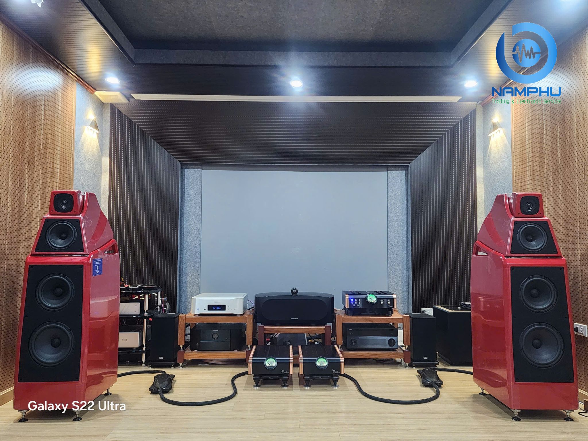 Một hệ thống xem phim với điểm nhấn là Alexia V, dòng loa cột thuộc bộ sưu tập V của Wilson Audio. Theo đó, mẫu loa này được tích cả củ loa Mid 7 inch Alnico (sự kết hợp giữa nhôm, niken và cobalt) QuadraMag®, vốn được phát triển cho “Bá Vương” Chronosonic XVX, và củ loa Tweeter Convergent Synergy Carbon (CSC) từ “Vệ Nữ” Alexx V. Nhờ đó, Alexia V vừa mang đến độ ấm và độ tinh tế cho dải trung, vừa sở hữu độ chi tiết ấn tượng cho dải cao.