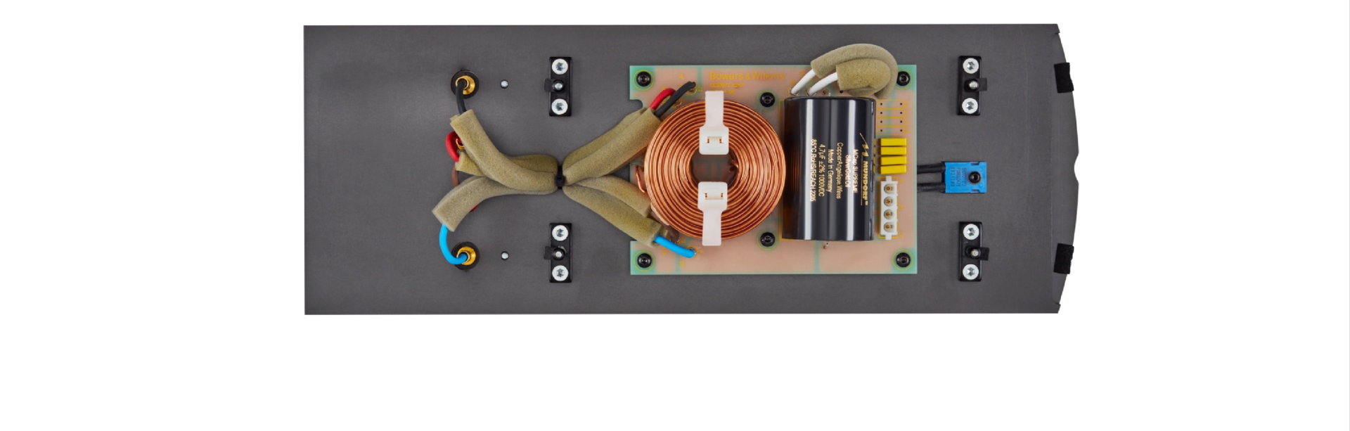 Cuối cùng chính là mạch phân tần của 801 D4 Signature và 805 D4 Signature. Cả hai đều được trang bị những tụ điện được nâng cấp triệt để (có thể nhận biết bằng lớp hoàn thiện màu vàng), cũng như là được nhân đôi số lượng trên các bảng mạch. Từ đó, bộ đôi này sẽ mang một chất lượng âm thanh chi tiết và trong sạch hơn nữa.