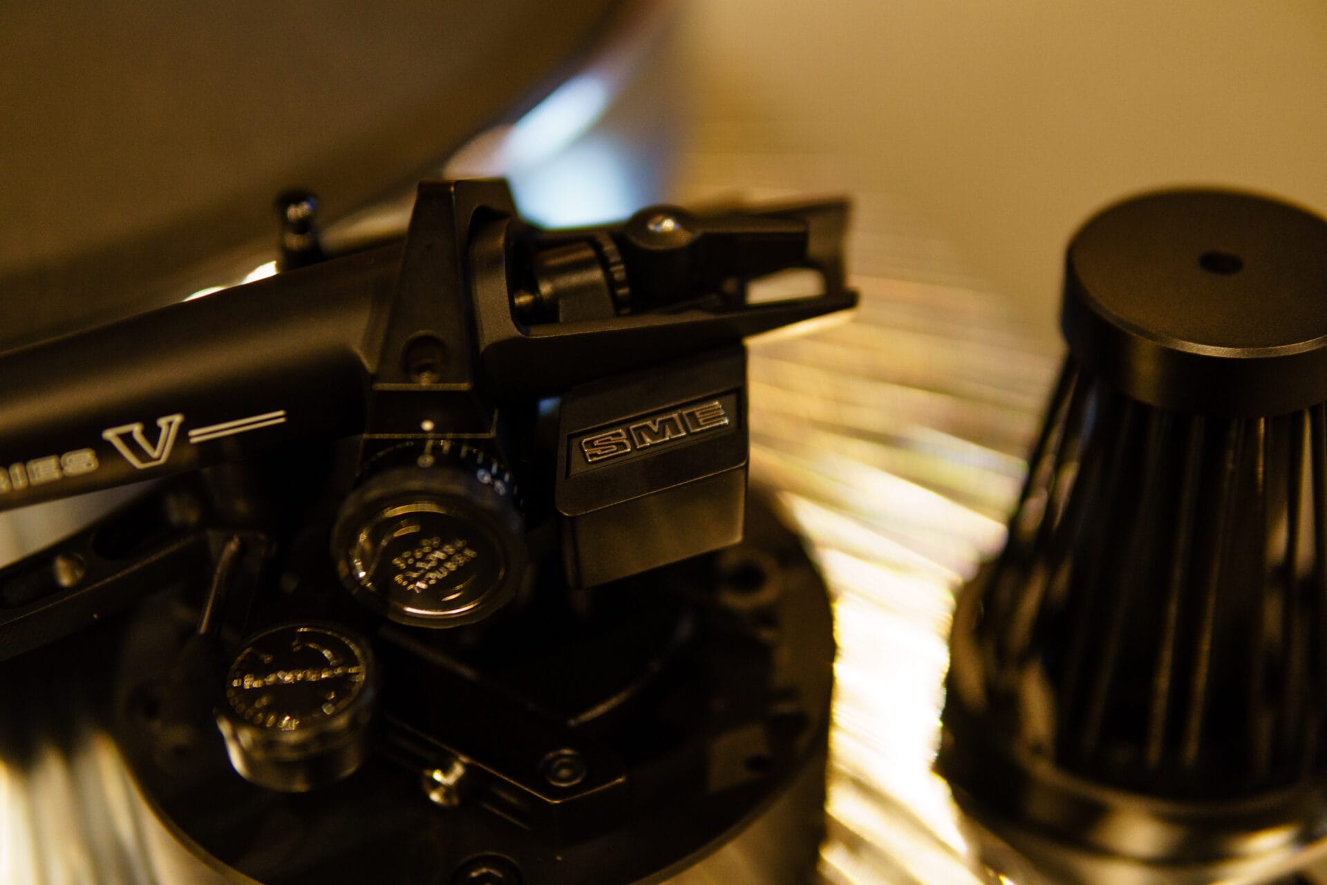 Bên cạnh những công nghệ nổi bật của dòng mâm này, người ta còn chú ý đến SME Series V, hay còn được gọi vui với cái tên Khẩu Pháo Anh Quốc. Đây là mẫu tay cần có kích thước 9 Inch, mang một thiết kế với nhiều bộ phận có thể điều chỉnh góc phương vị (Azimuth) cực kỳ chi tiết, từ đó giúp cho việc khai thác tín hiệu trên đĩa than trở nên chính xác nhất có thể. Đồng thời, với cấu tạo từ hợp kim Magnesium, Series V hiển nhiên có khối lượng tương đối nhẹ, nhưng có độ rắn chắc cực kỳ cao.